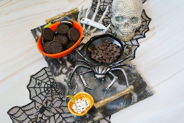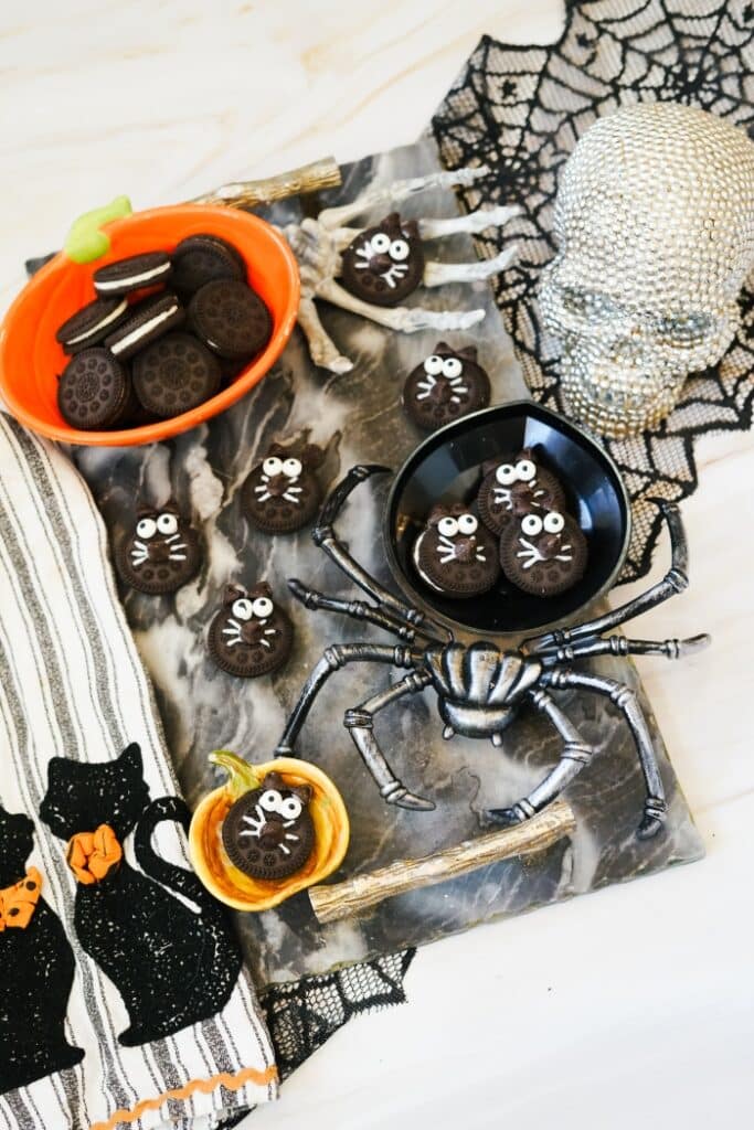 Head to the store and pick up the following ingredients to make these Black Cat Oreos for your kids.